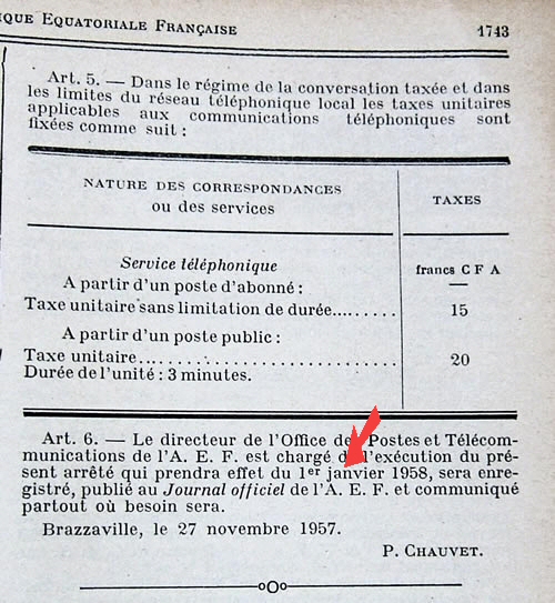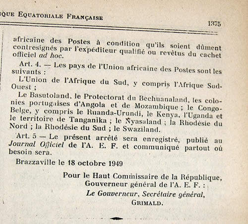 Note : L'en-tête de l'arrêté paru au J.O. parle de l'Union Française des Postes, mais le texte de l'arrêté, lui, concerne l'Union Africaine des Postes. La liste des pays concernés figure à l'article 4.