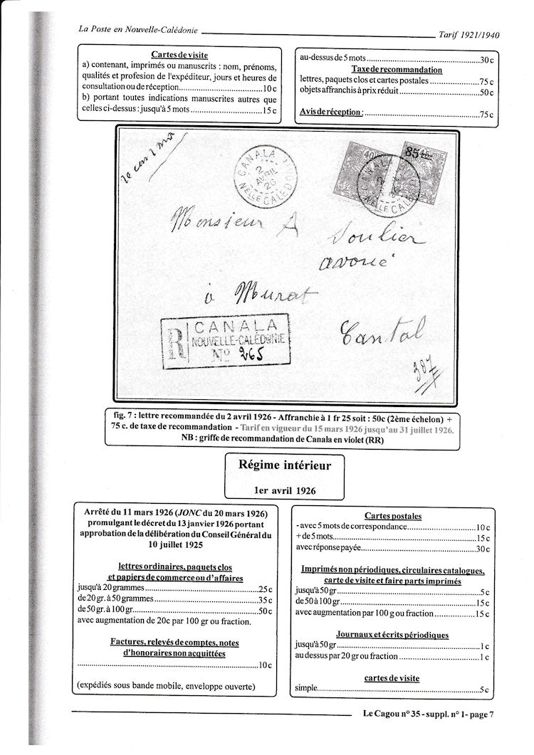 1. TARIFS POSTAUX DE NOUVELLE CALÉDONIE 1921 - 1940