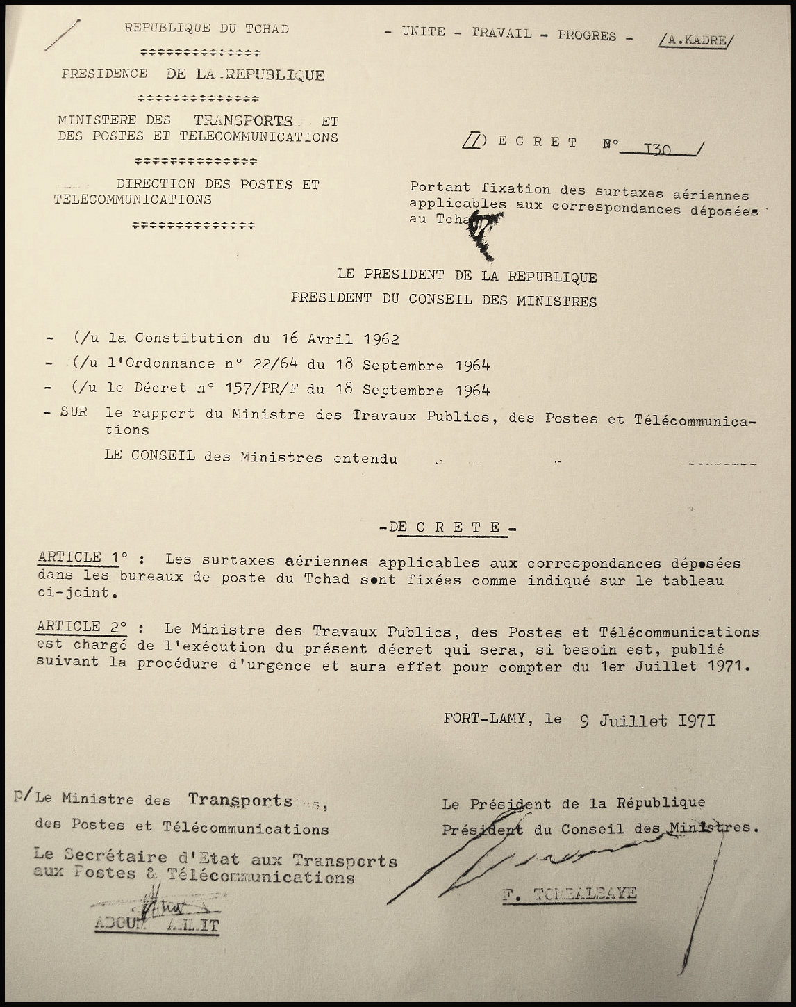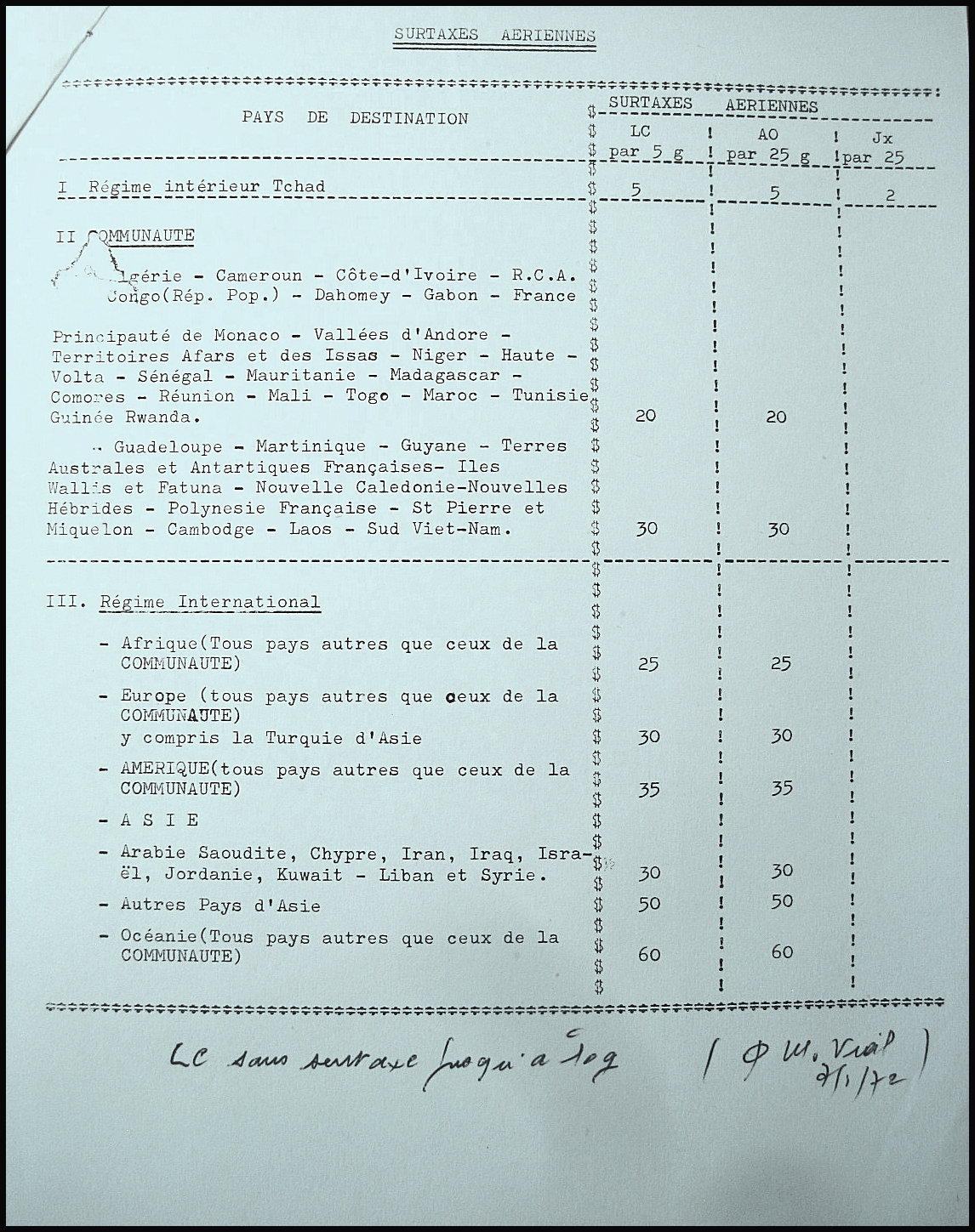 Surtaxes postales aériennes au départ du Tchad à compter du 1er juillet 1971